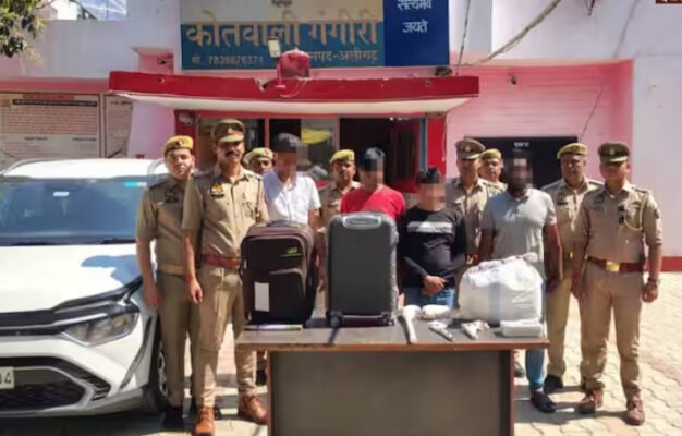 अलीगढ़, उत्तर प्रदेश: उत्तर प्रदेश के अलीगढ़ जिले के थाना गंगीरी पुलिस ने एक बड़ी कार्रवाई करते हुए नकली रुपये और नशीला मादक पदार्थ गांजा तस्करी करने वाले चार शातिर तस्करों को गिरफ्तार किया है। पुलिस ने मुखबिर की सटीक सूचना पर वाहन चेकिंग के दौरान इन आरोपियों को पकड़ लिया और उनके कब्जे से ढाई करोड़ रुपए के नकली नोट, एक लाख रुपये का गांजा और एक अवैध तमंचा बरामद किया है। इस कार्रवाई को लेकर पुलिस विभाग में हड़कंप मच गया है, वहीं तस्करों की गिरफ्तारी से क्षेत्र में अपराध की रोकथाम की दिशा में महत्वपूर्ण कदम उठाया गया है।