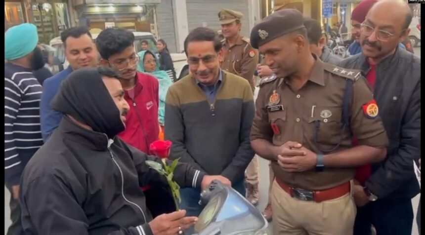 आगरा। ताजनगरी की सड़कों पर आज पुलिस का एक अलग और सौम्य चेहरा देखने को मिला। एसीपी सदर इमरान अहमद ने यातायात नियमों के प्रति लोगों को जागरूक करने के लिए एक अनोखी पहल की। हेलमेट न पहनने वालों का चालान काटने के बजाय उन्हें गुलाब का फूल देकर सुरक्षा का महत्व समझाया गया।