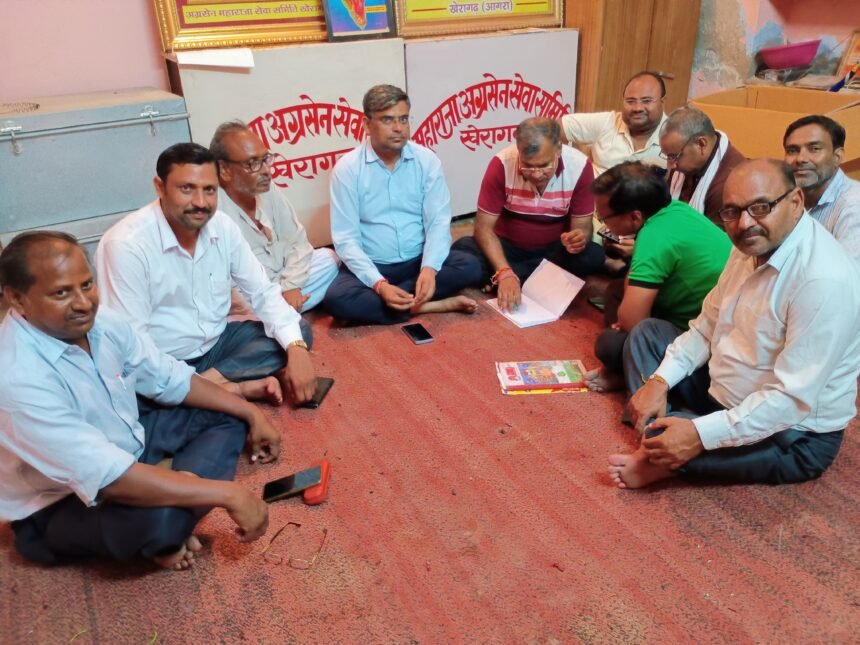 खेरागढ़ – महाराजा अग्रसेन जी की 5148 वीं जयंती की तैयारियों की रुपरेखा को लेकर खेरागढ कस्बा स्थित अग्रवाल भवन में महाराजा अग्रसेन सेवा समिति की कोर कमेटी की बैठक का आयोजन किया गया।जिसमे आगामी तैयारियों को लेकर विचार विमर्श हुआ।