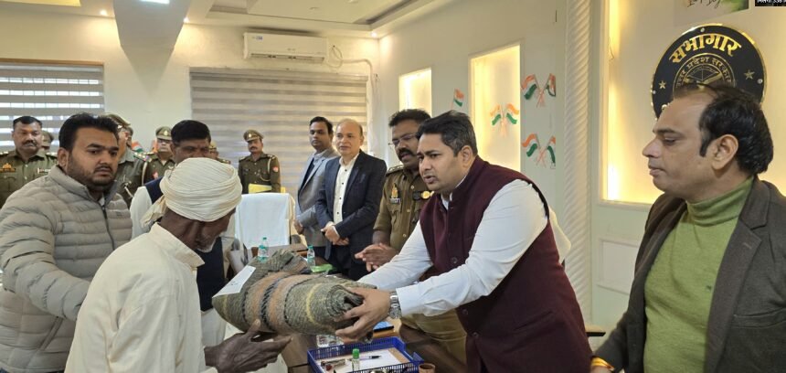 संपूर्ण समाधान दिवस के अवसर पर जिलाधिकारी ने असहाय गरीब वृद्ध को कम्बल वितरित किए