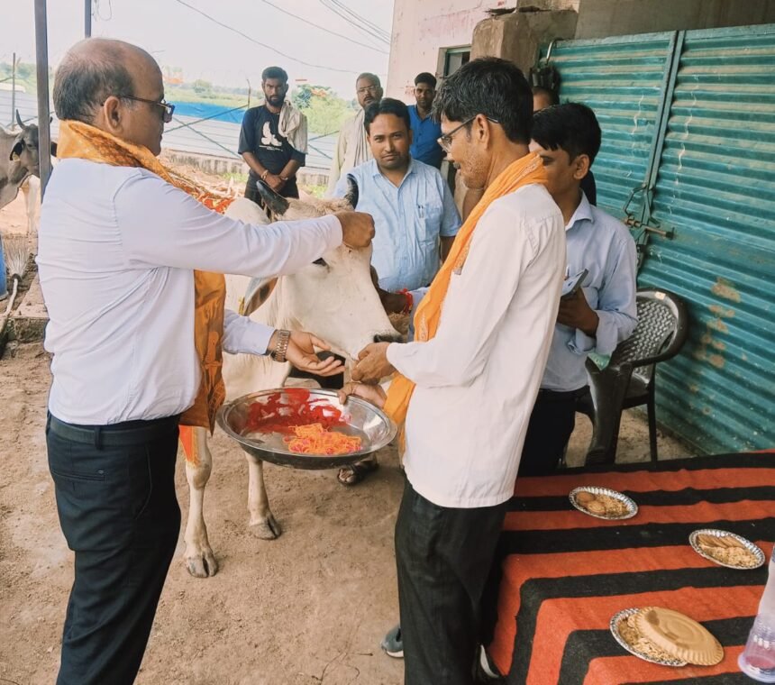 वही गायो का विधिवत पूजन कर गायो गुड़ केले खिलाये। निरीक्षण में मौजूद सचिव योगेंद्र परमार,प्रधान राजू पशुचिकित्सक इंद्रजीत सिंह गौपालक राजबहादुर सिंह परमार,राजू सिंह,भोलू आदि मौजूद रहे।