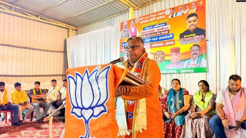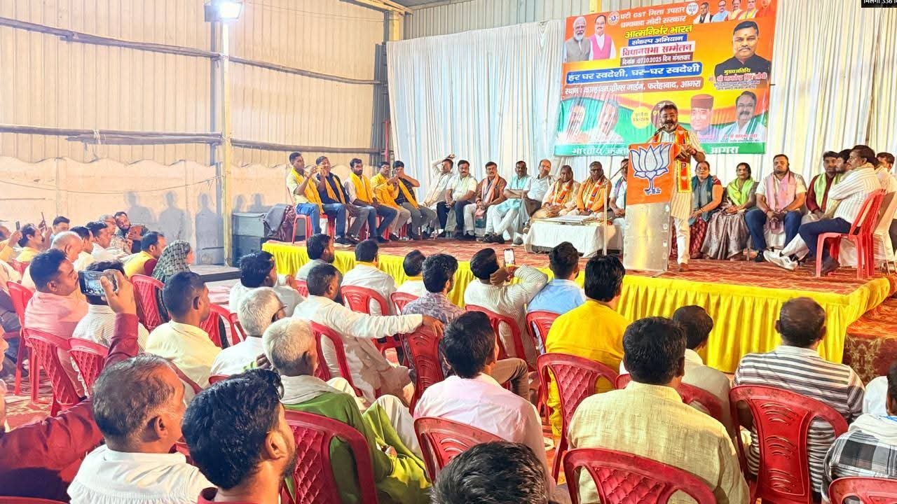 फतेहाबाद, आगरा: केंद्र की भारतीय जनता पार्टी (भाजपा) सरकार द्वारा जीएसटी (GST) की दरों में की गई कटौती के लाभों से आम जनता को अवगत कराने के उद्देश्य से मंगलवार को कस्बा फतेहाबाद के कान्हावन ग्रीन्स में एक जीएसटी सम्मेलन आयोजित किया गया। इस अवसर पर भाजपा नेताओं ने प्रधानमंत्री नरेंद्र मोदी के इस फैसले को जनहित में उठाया गया महत्वपूर्ण कदम बताते हुए उनकी जमकर सराहना की।