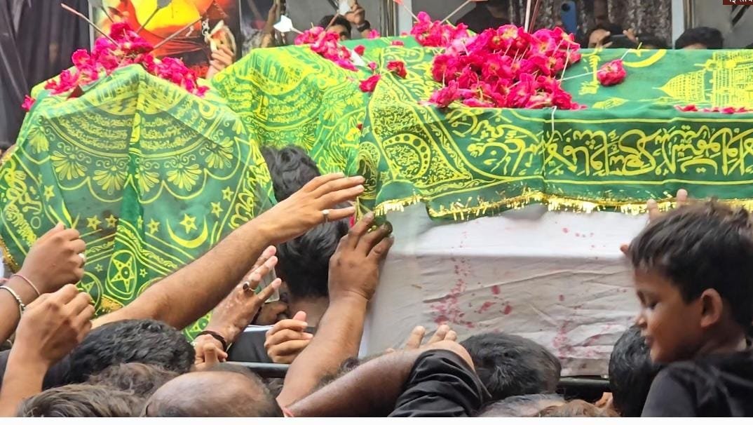 मजलिस के उपरांत, अकबरपुर से पधारे मौलाना सैयद शारिब अब्बास साहब ने इमाम हुसैन (अस) और कर्बला में उनके साथियों पर हुए ज़ुल्म का मार्मिक वर्णन किया, जिससे सभी की आँखें नम हो गईं. इसी ग़मगीन और शोकाकुल माहौल में 18 ताबूत निकाले गए, जिन्हें देखकर हर इंसान की आँखों में आँसू थे.