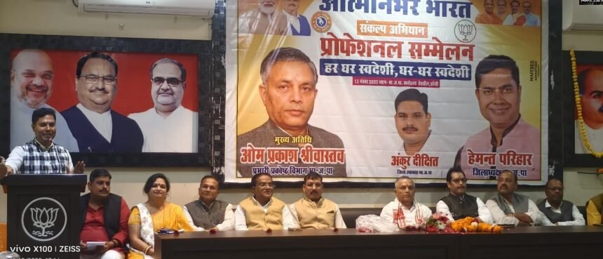आत्मनिर्भर भारत स्वाभिमान अभियान के अंतर्गत आज भाजपा कार्यालय में “हर घर स्वदेशी, घर-घर स्वदेशी” के संकल्प के साथ एक विशाल प्रोफेशनल मीट का आयोजन महानगर अध्यक्ष हेमंत परिहार की अध्यक्षता में हुआ। कार्यक्रम में प्रकोष्ठ एवं विभाग के प्रदेश प्रभारी ओमप्रकाश श्रीवास्तव मुख्य अतिथि के रूप में सम्मिलित हुए।
