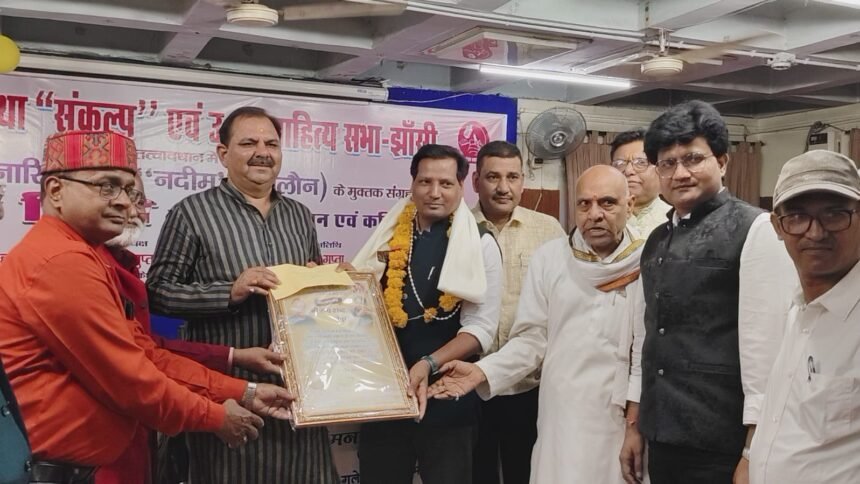 झांसी। साहित्यिक संस्था ‘संकल्प झांसी’ एवं ‘उत्तर प्रदेश साहित्य सभा’ के संयुक्त तत्वावधान में रविवार को राजकीय संग्रहालय के सभागार में भव्य सम्मान समारोह एवं कवि सम्मेलन का आयोजन किया गया। कार्यक्रम में साहित्यकारों की कृतियों पर गंभीर चर्चा हुई और श्रेष्ठ रचनाकारों को नकद धनराशि व स्मृति चिह्न देकर नवाजा गया।