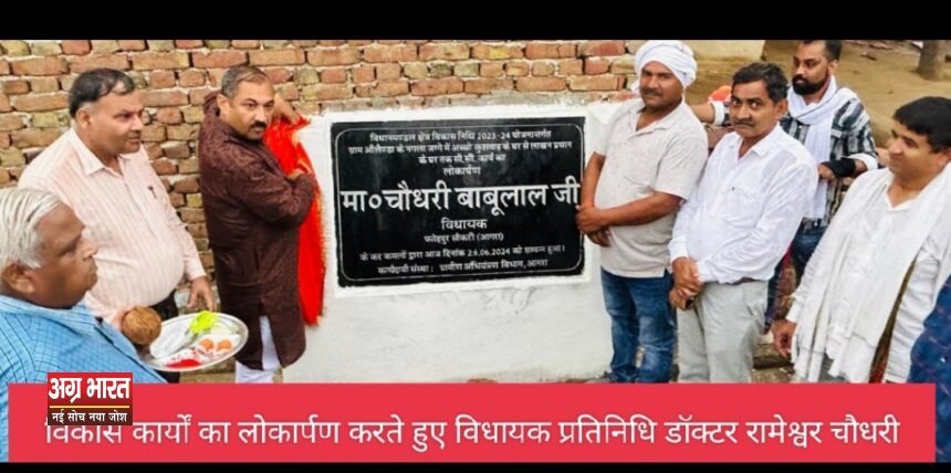किरावली। फतेहपुर सीकरी विधानसभा को विकसित विधानसभा बनाने की दिशा में विधायक चौधरी बाबूलाल अग्रणी भूमिका निभाते हुए निरंतर विकास कार्यक्रमों का लोकार्पण कर रहे हैं। विधानसभा क्षेत्र के गांव टीकरी और नगला जग्गे ओलेंडा में बुधवार को विधायक चौधरी बाबूलाल और प्रतिनिधि डॉ. रामेश्वर चौधरी द्वारा तुहीराम के घर से कुमारपाल के बाड़े तक और कुशवाह के घर से लाखन प्रधान के घर तक सीसी रोड निर्माण के लिए 45 लाख रुपए की लागत से विकास कार्यों का लोकार्पण कर ग्रामीणों को सौगात दी गई है।