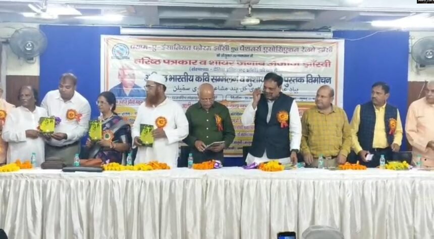 झांसी / झांसी के वरिष्ठ पत्रकार और मशहूर शायर मरहूम अज़ीज़ झांस्वी जी की याद में पयाम ए इंसानियत फोरम एंव रेलवे पेंशनर्स एसोसिएशन के संयुक्त तत्वावधान में राजकीय संग्रहालय में कवि सम्मेलन / मुशायरा आयोजित किया गया जिसआ शुभारंभ कार्यक्रम के मुख्य अतिथि पुनीत बिसारिया, विशिष्ट अतिथि असफान सिद्दीकी समाजसेवी, आफताब आलम भेल कल्याण अधिकारी,ओ एस भटनागर, प्रोफेसर इकबाल खान, खालिद खान एंव अन्य ने शमां रोशन कर शुभारंभ किया कार्यक्रम में ग्वालियर की विख्यात शायरा और कवियत्री / सुनिधि वैश्य की पुस्तक ग़ज़ल संग्रह धूप ही धूप और झांसी के मशहूर शायर जाहिद कौंचवी की पुस्तक मताये सुखन दयारे रुबाइयात का अतिथियों द्वारा विमोचन किया गया सभी अतिथियों का स्वागत पयाम ए इंसानियत फोरम एंव रेलवे पेंशनर्स एसोसिएशन के सदस्यों द्वारा माला पहनाकर एंव बैज अलंकरण कर किया गया।