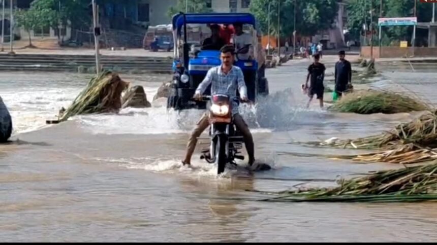 झांसी, उत्तर प्रदेश, सुल्तान आब्दी: झांसी में लगातार बारिश का कहर जारी है, जिसके चलते नदी-नाले उफान पर हैं। सूखनई नदी अपना रौद्र रूप दिखा रही है, और इस पर बने रपटों (छोटे पुलों) पर पानी का तेज बहाव लगातार जारी है। 24 घंटे से अधिक समय से पुलों के ऊपर से पानी बहने के बावजूद, लोग जान जोखिम में डालकर इन्हें पार कर रहे हैं। वहीं, स्थानीय पुलिस-प्रशासन की ओर से सुरक्षा के कोई इंतजाम नहीं किए गए हैं। लोगों का कहना है, “न पिकेट न सिपाही, कौन देगा सुरक्षा की गवाही?”