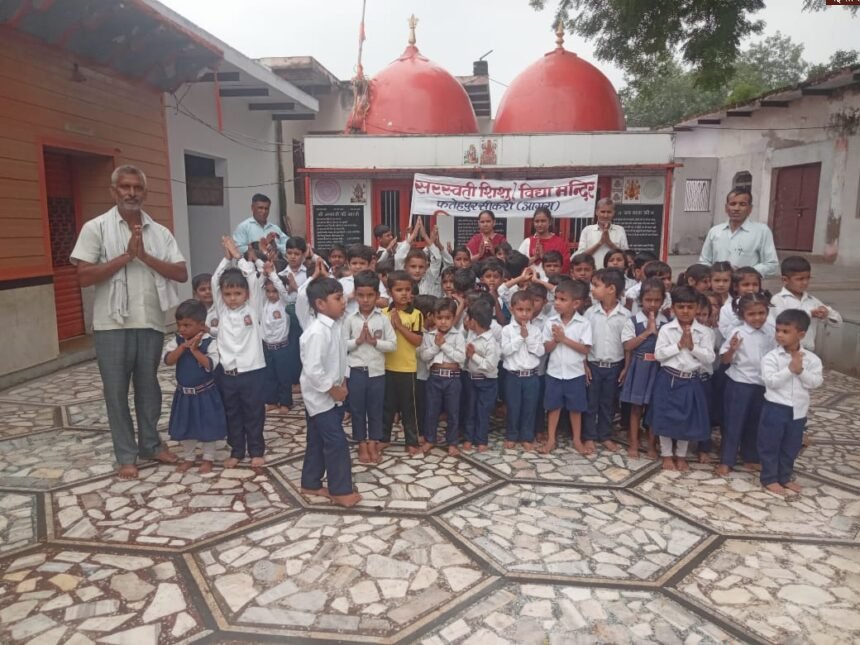 फतेहपुर सीकरी, आगरा: सरस्वती शिशु विद्या मंदिर के पहली कक्षा तक के बच्चों को गुरुवार को धार्मिक स्थलों के दर्शन कराए गए। स्कूल प्रबंधन बच्चों को बड़ी बगीची और छोटी बगीची मंदिरों में लेकर गया, जहाँ उन्हें भारतीय संस्कृति और परंपराओं से रूबरू कराया गया।