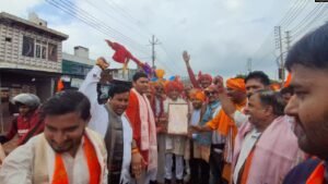 जगनेर – जगनेर में विश्व हिंदू परिषद बजरंगदल द्वारा वाल्मीक चौक से मेन बाजार होते हुए श्री ग्वाल बाबा मंदिर पर नेजा चढ़ाया गया। वाल्मीक चौक पर कार्यक्रम की शुरुआत की गई जिसमें मुख्य अतिथि प्रांत संघठन मंत्री राजेश ने सभी कार्यकर्ताओं को संबोधित करते हुए कहा कि हिन्दू समाज को एकत्रित होने की आवश्यकता है। जब भारतीय संस्कृति और हिंदु समाज की रक्षा होगी। भाजपा मण्डल अध्यक्ष डॉ.लवलेश कुमार ने अपने क्लिनिक पर सभी अतिथियों का चित्र भेंट करके स्वागत किया। विभाग मंत्री राहुल जोशी,निधि प्रमुख रविन्द्र परमार, परियोजना प्रमुख राम प्रकाश फौजी, जिलाध्यक्ष सतेंद्र भारद्वाज,महेश उपाध्याय राना,रवि तिलोकानी,अचल रावत,राजेश कुशवाह,राजा तोमर,राजेश उपाध्याय,धर्मवीर सेन,शिवकुमार मित्तल,मनीष जादौन,संजू सक्सेना,राहुल परमार,डॉ.प्रदीप,ब्रजेश सवारियां,जीतू सेन,सतीश,राकेश वाल्मीक आदि उपस्थित रहे |