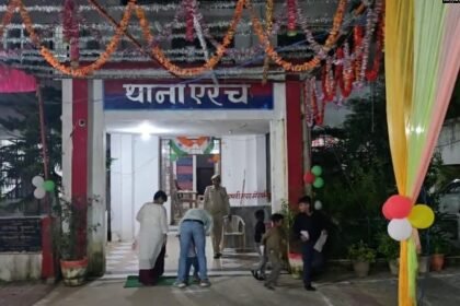 ऐरच थाने में धूमधाम से मना श्रीकृष्ण जन्माष्टमी महोत्सव, पुलिसकर्मियों ने सजाई झांकी